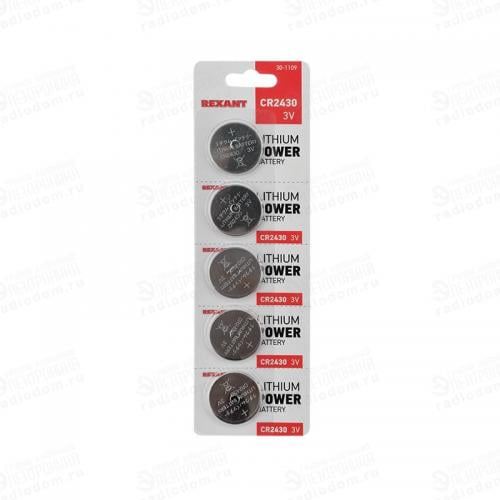 REXANT CR2430 3V 300 mAh блистер BL5 - надежное и качественное решение для питания различных устройств, таких как часы, пульты дистанционного управления, игрушки и другие электронные приборы.