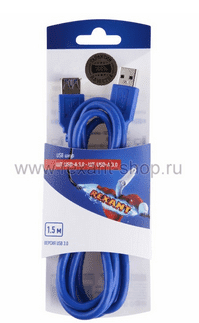 Rexant 06-3159Шнур USB-A (male) - USB-A (female) 1.5M 3.0 REXANT предназначен для упрощения доступа к USB порту ПК и он может использоваться для удлинения USB-кабеля, который соединяет компьютер с периферийными и портативными устройствами (джойстиками, различными манипуляторами аудио-, видеоустройствами, устройства хранения информации, сканерами, принтерами, МФУ и т.п.). C одной стороны шнура располагается штекер разъема USB-A, с другой стороны шнура располагается разъем USB гнездо. Разъемы изготовлены из высококачественного пластика, а контакты из никелированного сплава меди, что способствует стабильной передачи сигнала. Цвет шнура синий, а его длина составляет 1.5 метров. Интерфейс USB является самым распространенным на сегодняшний день, а разъемы USB 3.0 в отличие от USB 2.0 передает информацию в 10 раз быстрее (4,8 Гбит/с против 480 Мбит/с). Также в версии 3.0 увеличен номинальный допустимый ток с 500 до 900мА. Это позволяет подключать к одному хабу гораздо больше устройств, а так же избавляет от необхо