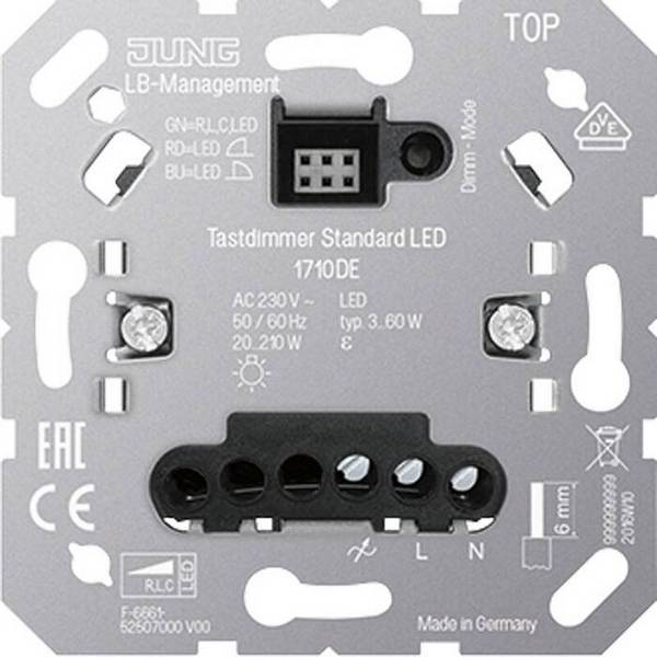 Механизм светорегулятора Jung Jung 1710DE предназначен для регулировки яркости освещения в помещении. Скрытый монтаж обеспечивает эстетичный внешний вид, а широкий диапазон мощности от 20 до 210 Вт позволяет настроить освещение по своему усмотрению. Этот механизм идеально подходит для создания комфортной атмосферы в любом помещении, где требуется регулировка яркости света.