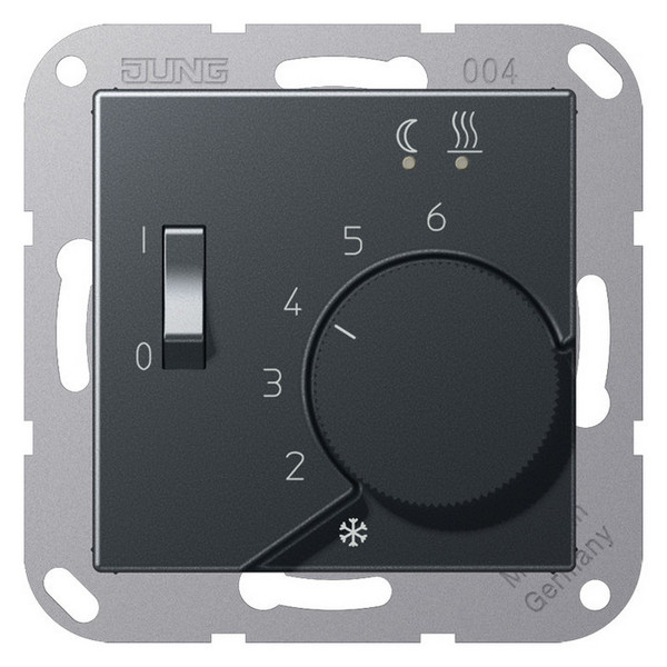Термостат для теплого пола Jung А-СЕРИЯ – это стильное и современное устройство, которое позволит вам легко контролировать температуру в помещении. Он оснащен датчиком, который позволяет точно измерять и поддерживать оптимальный уровень тепла.Термостат имеет скрытый монтаж, что делает его незаметным и эстетичным элементом интерьера. Цвет антрацит матовый придает ему элегантный и современный вид, который подойдет к любому стилю оформления помещения.