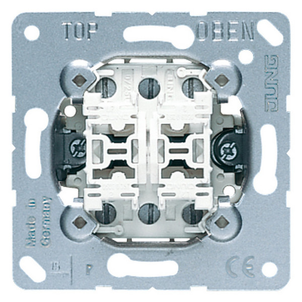 Механизм переключателя 2-клавишного Jung коллекции JUNG, скрытого монтажа, модель 509U - это качественное и надежное устройство для управления освещением или другими электрическими устройствами в помещении. Он обеспечивает удобное переключение между двумя различными режимами работы и имеет стильный дизайн, который отлично впишется в любой интерьер. Механизм скрытого монтажа обеспечивает эстетичный внешний вид и позволяет установить переключатель так, чтобы он не привлекал лишнее внимание. Продукт отличается высоким качеством исполнения и долгим сроком службы, что делает его идеальным выбором для любого помещения.