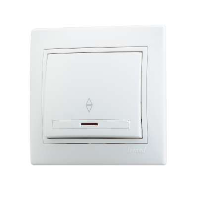 Выключатель проходной одинарный с подсветкой. Особенности заключаются в европейском дизайне. в повышенной безопасности негорючего поликарбонатного ПК-пластика. в более прочном и устойчивом к механическому воздействию покрытии. в простом монтаже и демонтаж