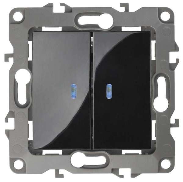 12-1105-06 ЭРА Выключатель двойной с подсветкой, 10АХ-250В, IP20, Эра12, чёрный - это качественный выключатель, который обладает двумя кнопками для управления освещением или другими электрическими устройствами. Он оснащен подсветкой, которая позволяет легко найти кнопки даже в темноте.Выключатель имеет номинальное напряжение 10АХ-250В, что обеспечивает его применимость в различных электрических системах.