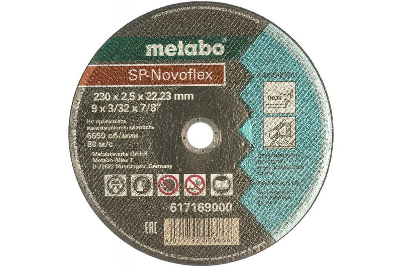 Круг отрезной нержавеющий SP-Novoflex 230х2.5х22.23мм RU Metabo 617169000 идеально подходит для использования в строительстве, металлообработке, автомобильной промышленности и других отраслях, где требуется точная и качественная обработка нержавеющей стали.