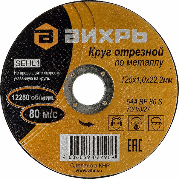 В нашем магазине «Главэлектрика» в Оренбурге, вы можете приобрести товар: «Круг отрезной по металлу 125х1.0х22мм Вихрь 73/1/3/27» с доставкой по г. Оренбург.