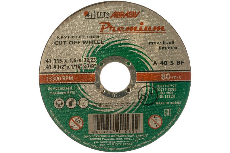 В нашем магазине «Главэлектрика» в Оренбурге, вы можете приобрести товар: «Круг отрезной по металлу+нерж. 115 х 1,6 х 22 мм, ПРЕМИУМ (Луга)// Россия» с доставкой по г. Оренбург.