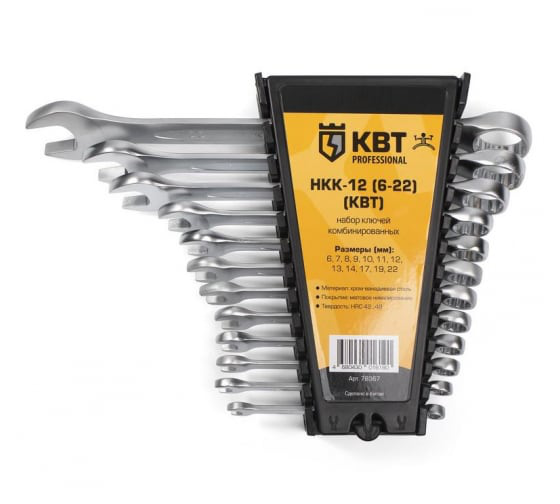 Набор ключей комбинированных 6-22 мм НКК-12 (КВТ 78367) - это удобный и компактный набор инструментов, который включает в себя 12 ключей различных размеров: от 6 мм до 22 мм. Каждый ключ изготовлен из прочного и надежного материала, обеспечивая долгий срок службы инструмента. Комбинированный дизайн ключей позволяет использовать их как обычные гаечные ключи и как торцевые ключи, что делает этот набор универсальным и удобным для широкого спектра работ. Набор ключей НКК-12 идеально подходит как для профессиональных механиков, так и для любителей автосервиса и ремонта.