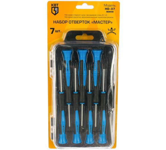 Набор отверток Мастер НО-07 мини (КВТ) - компактный и удобный набор инструментов для выполнения различных работ по монтажу и ремонту. Включает в себя несколько отверток разных размеров, что позволяет подобрать подходящий инструмент для любой задачи. Каждая отвертка изготовлена из прочного материала, что обеспечивает долгий срок службы. Идеальный выбор для домашнего мастера или профессионала, который ценит качество и удобство в работе.