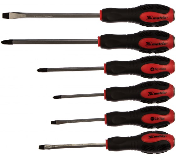 Набор ударных отверток 6шт. PH1x75, PH2x100, PH3x150, SL5x75,SL6x100, SL8x150, CrV// Matrix - это набор качественных ударных отверток, которые предназначены для работы с различными видами крепежных элементов. В наборе содержатся отвертки различных размеров и типов: PH1x75, PH2x100, PH3x150, SL5x75, SL6x100, SL8x150. Изготовлены из хром-ванадиевой стали (CrV), что обеспечивает высокую прочность и долгий срок службы инструментов. Надежные и удобные в использовании, эти ударные отвертки станут незаменимым помощником как в профессиональных мастерских, так и в быту. Комплектация отверток в наборе позволит вам справиться с широким спектром задач по монтажу и ремонту.