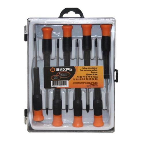 Набор отвёрток для точных работ НОТ 8 Вихрь - это идеальное решение для выполнения мелких и тонких работ. В наборе содержится 8 различных отвёрток, которые помогут вам справиться с любыми заданиями, требующими точности и аккуратности. Каждая отвёртка имеет удобную рукоятку для комфортного использования и надёжного хвата. Благодаря высококачественным материалам и прочной конструкции, эти отвёртки обеспечат вам долгий срок службы и отличные результаты при работе. Набор отвёрток для точных работ НОТ 8 Вихрь - незаменимый помощник для любого мастера и профессионала.