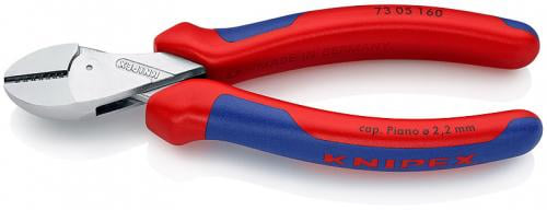 Мощный, лёгкий, универсальный. Точно режут как тончайшую проволоку, так и многожильный кабель или твердую рояльную струну. Коробчатый шарнир: максимальная стабиоьность при небольшом весе. Высокая режущая способность при меньшей затрате усилий благодаря оптимальному согласованию угла режущих кромок, передаточного отношения рычагов и эргономичной конструкции ручек. Экономия усилий 40% по сравнению сo стандартными боковыми кусачками одинаковой длины. Большая ширина раскрытия для резки толстых кабелей. Точная резка даже очень тонкой медной проволоки. Компактная легкая конструкция. Ось шарнира для самых высоких продолжительных нагрузок. Универсальное применение - для монтажных и ремонтных работ, а также производства. Высококачественная хромованадиевая сталь, кованая, многоступенчатая закалка в масле.