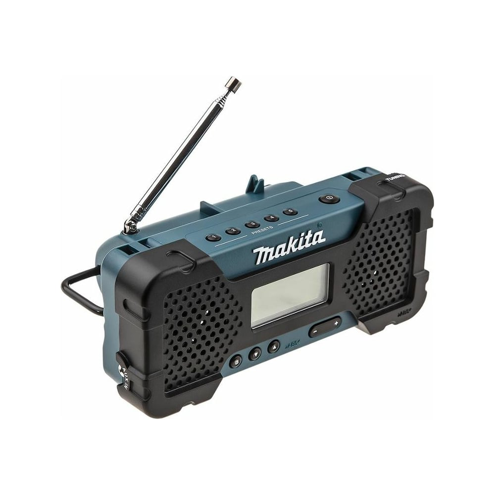 Радио Makita MR051 снабжено двумя динамиками и цифровым жидкокристаллическим дисплеем. Предусмотрен выход на наушники. Оно работает от Li-lon аккумулятора напряжением 10.8 В и емкостью 1.3 А*ч. Зарядки хватает на 2.5 часа.