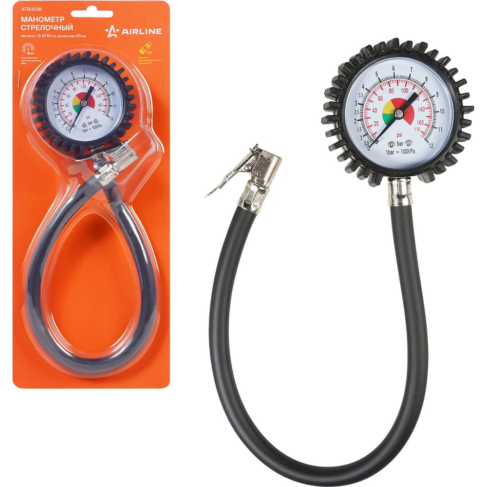 Манометр стрелочный металлический AIRLINE 12 атм, со шлангом 45 см ATBU038