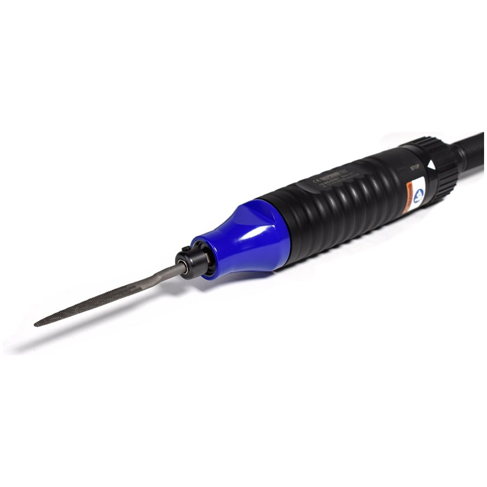 Пневматический напильник DEPRAG FS905-630BY 6061238A работает за счет возвратно поступательных движений, подходит для снятия заусенцев, опиливания, тонкого шлифования и притирки. Имеет простое управление и длительный срок службы. Оснащена небольшим весом и компактными размерами. Дополнительные характеристики Kоличество колебаний вхолостую 6300 мин-1 Ход перемещения: 9 мм Диаметр - зажимный 5 (3 мм, редукция) мм Расход воздуха в холостую 0,2 м3/мин Включение: поворотный тип включения