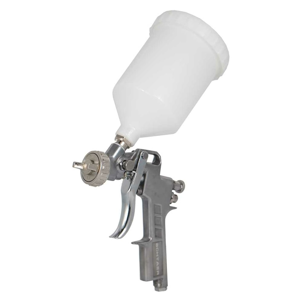 Воздушный краскораспылитель SCHTAER SCH-990-1.3 предназначен для нанесения любых видов покрытий: эмалей, грунтов, лаков и т.п. Используется для бытового окрашивания дома, на даче, в гараже. Исполнен в легком прочном металлическом корпусе. Верхний бачок 650 мл. Расход воздуха: 127-227 л/мин. Возможность регулировки подачи воздуха, рабочего материала и формы факела (до 20 см). Игла и сопло окрасочного пистолета сделаны из нержавеющей стали.