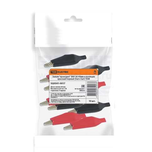 Зажим "крокодил" ЗКИ 10А 56мм в изоляции красный/черный (3шт+3шт) TDM SQ0541-0019 НазначениеДля фиксации или временного соединения проводников.