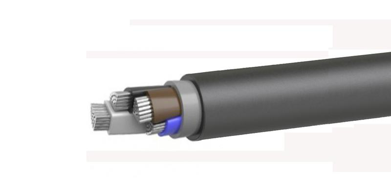кабель силовой с 4 алюминиевыми многопроволочными жилами секторой формы сечением 120 миллиметров квадратных, с изоляцией и оболочкой из поливинилхлоридного пластиката пониженной пожарной опасности на напряжение 1 кВ.