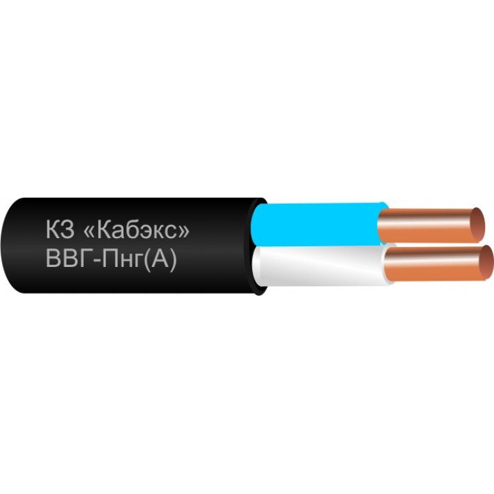 Силовой медный кабель ВВГ-Пнг(А) 2x2,5 мм2, (кратно 100), ГОСТ, Кабэкс представляет собой высококачественный электрокабель, который обеспечивает надежное и безопасное соединение в электрических системах.