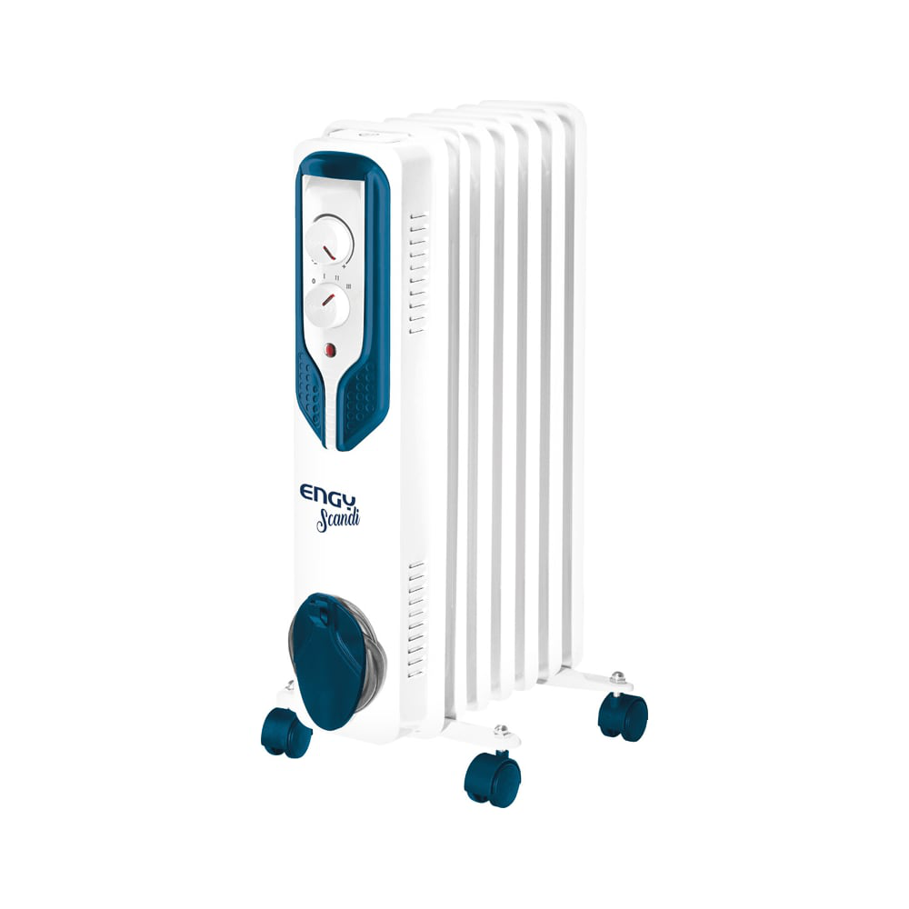 Дополнительные характеристики для масляного радиатора Engy EN-2507 Scandi 7 секций 1.5 кВт 102951: Компактный типоразмер секций. Размер секции (ШхВ): 120х500 мм. Защита от перегрева. Световой индикатор работы. Регулируемый термостат. Регулировка мощности. Колёсики для перемещения. Устройство для намотки сетевого шнура.