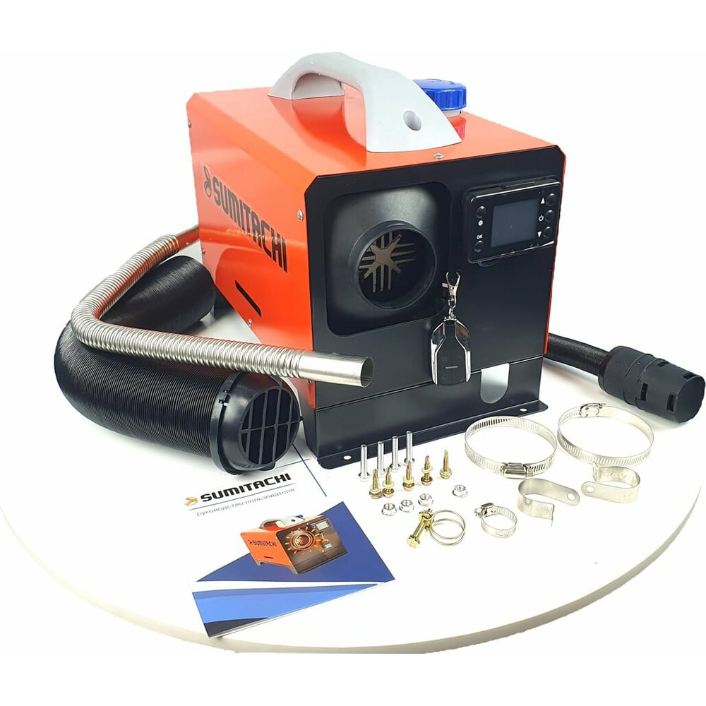 Автономный дизельный отопитель SUMITACHI 12- 220В АВТ12 собран в компактном корпусе и готовый к использованию. Можно использовать на зимней рыбалке, на даче, в гараже, бытовке, теплице, складе, хозблоке, для обогрева машины и кабины фуры, спецтехники, армейской палатке, землянке в лесу и в походе на сборах. Дизельный отопитель это аналог Webasto (Вебасто). Мощность обогревателя регулируется до 5 КВт. Мобильное устройство работает на дизельном топливе и питается от 12 и 220 Вольт. Устройство комплектуется удобным пультом управления с индикацией мощности, напряжения, температуры, а так же имеет пульт дистанционного управления с дальностью действия 50-70 метров. Возможен запуск и остановка по таймеру. Безопасно в использование. Дополнительные характеристики: Потребление на разогреве 11А - 130W, при min нагрузке 1A - 10W, max нагрузка 4,5A - 45W. Расход дизельного топлива в режиме 2КВт - 150мл/ч.
