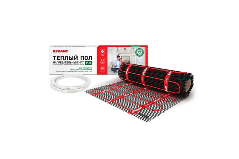 Теплый пол REXANT PRO, 440 Вт, двухжильный с экраном 51-0012 подойдет для укладки в стяжки или под плитку. Мат состоит из двухжильного кабеля, который зафиксирован на сетчатой основе. Оболочка кабеля изготовлена из ПВХ-пластиката повышенной теплостойкости.
