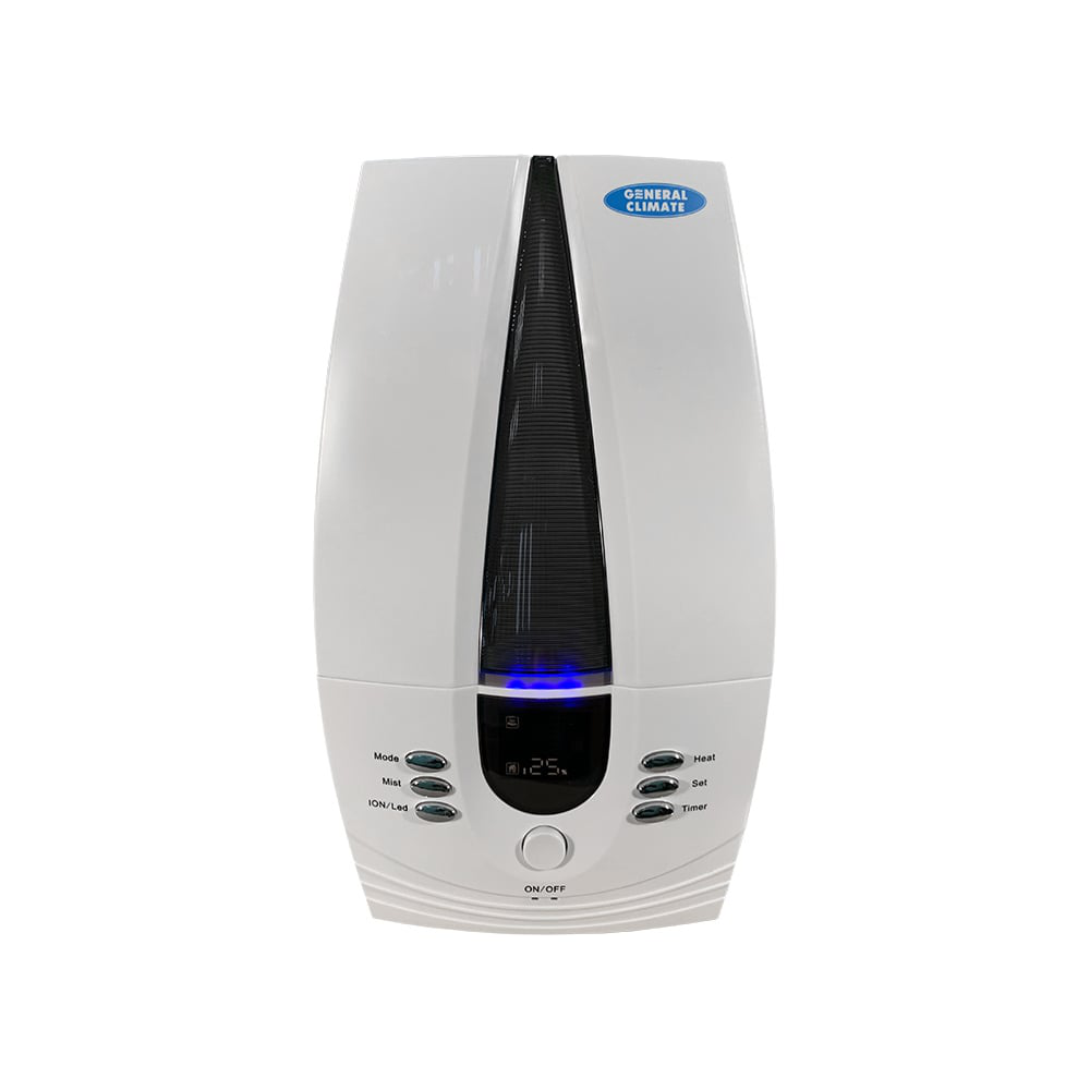 General Climate (Дженерал Климат) Victoria GC-37 представляет собой ультразвуковой увлажнитель воздуха, снабженный функцией предварительного нагрева пара. На передней части прибора имеется панель управления, используя которую можно регулировать интенсивность парообразования, задавать время автоматического отключения, а также включать и отключать функцию ионизации воздуха. Увлажнители воздуха производства компании General Climate изготавливаются по современным технологиям из прочных, устойчивых к износу материалов. Это и высокое качество сборки позволило сделать данные приборы неподверженными поломкам и действительно долговечными. ABS-пластик, из которого изготовлен внешний корпус, обладает высокой прочностью и способностью сохранять свой изначальный цвет на протяжении всего срока эксплуатации.
