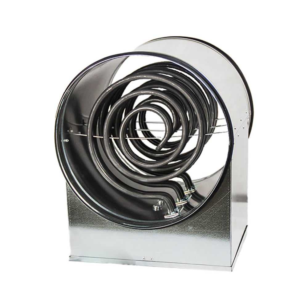 Электрический канальный нагреватель для круглых каналов, корпус и коммутационная коробка изготовлены из оцинкованного стального листа, нагревательные элементы из нержавеющей стали. Нагреватель изготавливается в соответствии ГОСТ 15150-69 климатического исполнения группы УХЛ 4 и должен размещаться в помещениях, защищенных от воздействия атмосферных осадков. Направление воздушного потока должно соответствовать стрелке, расположенной на нагревателе. Скорость воздуха в канале нагревателя должна быть не менее 1,5 м/с, а выходная рабочая температура не должна превышать 40 (С). В случае несоблюдения данных условий возможно срабатывание защиты от перегрева. Нагреватель может быть установлен горизонтально или вертикально. Соединительная коробка может быть расположена сверху и сбоку.