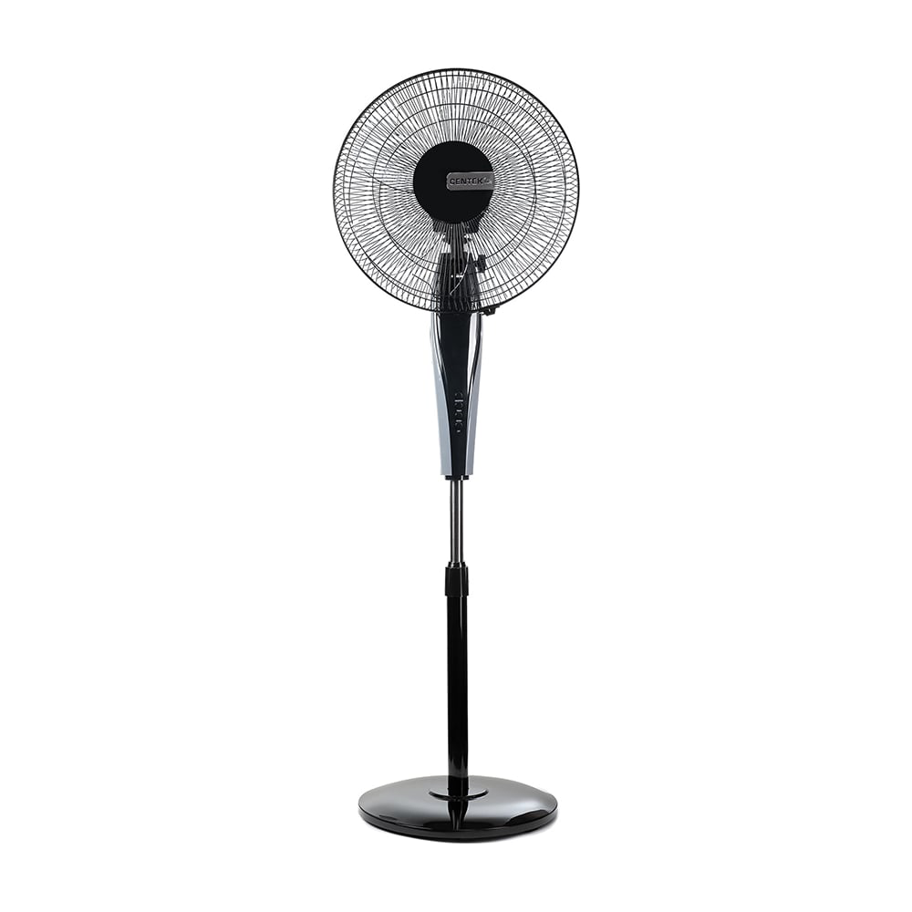 Вентилятор Centek CT-5010 устанавливается на пол и надежно удерживается в вертикальном положении тяжелой платформой.Его большие, 43-сантиметровые в диаметре лопасти, могут вращаться с тремя разными скоростями, что дает возможность настроить комфортный воздушный поток.У Centek CT-5010 можно регулировать угол наклона головки и высоту опоры, а также поворот рабочей части (максимально – 90 градусов). Управлять вентилятором можно с пульта или при помощи кнопок, расположенных на стойке. LED-дисплей отображает выбранный режим работы прибора.