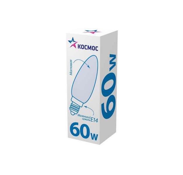 Лампа накаливания свеча Космос 60Вт E14, LKsmSCnFr60E14v2 отличается высоким качеством материалов и прочностью. Она обеспечивает долгий срок службы без необходимости регулярной замены. Благодаря стандартному цоколю E14 она с легкостью устанавливается в любой подходящий под нее светильник.