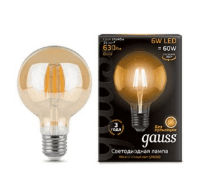 В нашем магазине «Главэлектрика» в Оренбурге, вы можете приобрести товар: «Gauss LED Filament G95 E27 6W Golden 2400K» с доставкой по г. Оренбург.