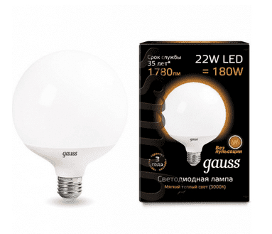 В нашем магазине «Главэлектрика» в Оренбурге, вы можете приобрести товар: «Лампа светодиодная Gauss LED G125 E27 22W 1780lm 3000K » с доставкой по г. Оренбург.
