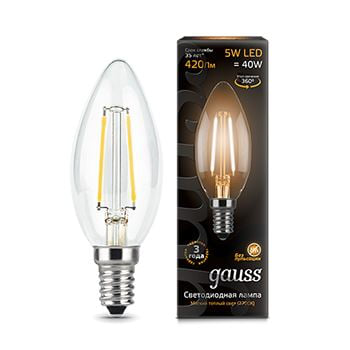 Лампа светодиодная Gauss LED Filament Candle 5W E14 2700K(103801105) Производитель: GaussМощность: 5 Вт