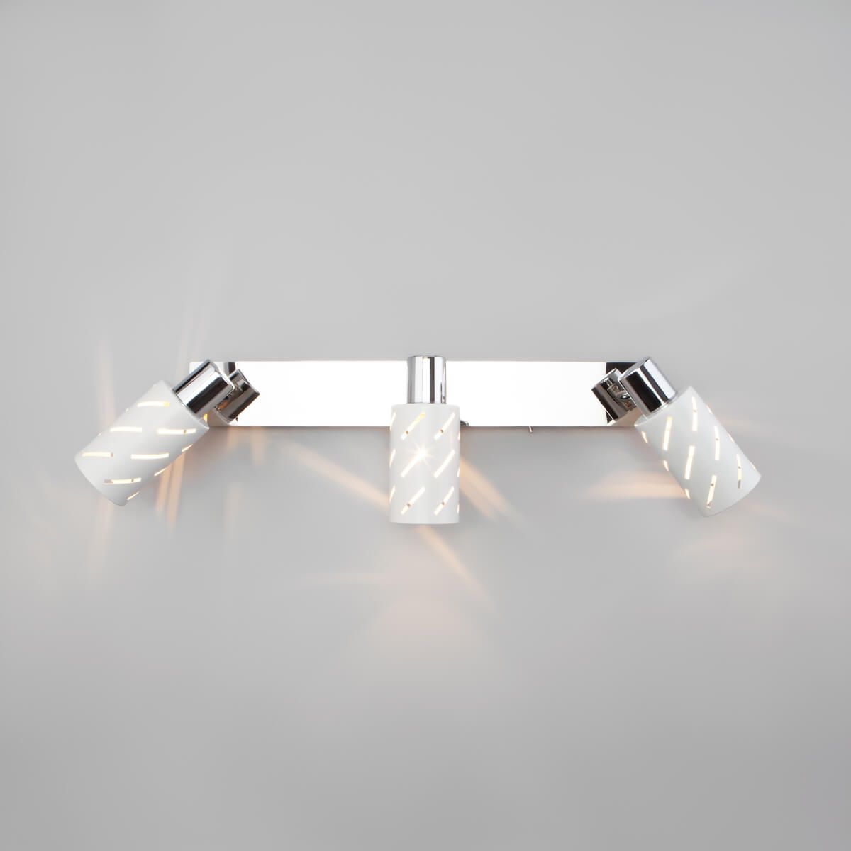 Расширенная гарантия на товар составляет 3 года. поставщик рекомендует использовать лампы накаливания с цоколем E14 для освещения площади 6 м2. Спот Eurosvet Fente 20090/3 белый/хром в современном стиле используется в интерьере Для гостиной с установкой На стену.
