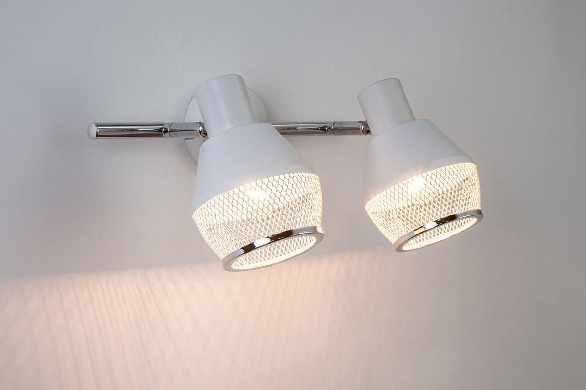 Расширенная гарантия на товар составляет 2 года. поставщик рекомендует использовать лампы накаливания с цоколем E14 для освещения площади 4 м2. Спот Escada 1117/2A в современном стиле используется в интерьере Для гостиной с установкой На стену.