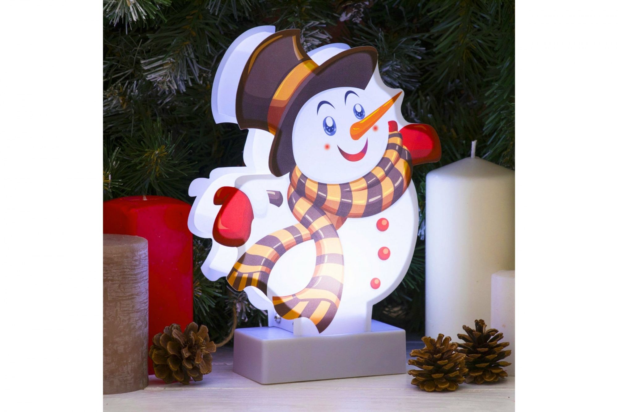 Один светодиодный источник света создает мягкий и приятный сияние, которое будет радовать глаза в течение всего праздничного сезона. Фигура станет ярким акцентом на вашей елке или же может быть использована для украшения окна, полки или стола. Снеговичок имеет симпатичное выражение лица и веселые черты, что добавляет еще больше настроения праздника.