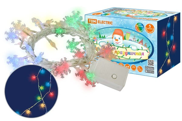 В нашем магазине «Главэлектрика» в Оренбурге, вы можете приобрести товар: «Внутренняя IP20 Гирлянда Снежинки 5м, 50LED, 8 режимов, многоцвет., прозр. шнур, 250 В, TDM SQ036» с доставкой по г. Оренбург.