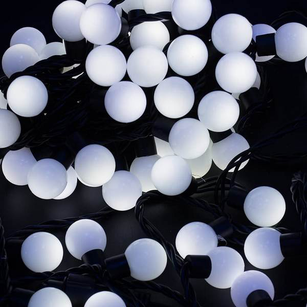 Гирлянда Мультишарики D23мм, 10м, черный каучук, 80LED, постоянное свечение, цвет Белый - это электрическая гирлянда, которая состоит из 80 светодиодных лампочек в форме шариков диаметром 23 мм. Длина гирлянды составляет 10 метров, а провод выполнен из черного каучука, что делает его гибким и прочным. Гирлянда имеет постоянное свечение, то есть лампочки не мигают, а светятся равномерно. Цвет свечения лампочек - белый. Эта гирлянда станет отличным украшением для праздников, вечеринок или просто для создания атмосферы уюта и романтики в помещении.