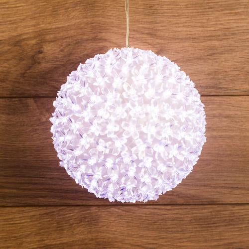 Данный шар имеет диаметр 20 сантиметров и может использоваться как внутри помещений, так и на открытом воздухе. Он обеспечивает защиту от пыли и брызг, благодаря классу защиты IP20. Вы можете установить его на потолке или подвесить к стене с помощью специального крепления.