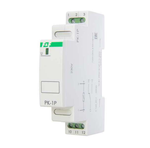 Промежуточное реле PK-1P/Un предназначено для монтажа на DIN-рейке шириной 35мм. Оно работает при напряжении 24В переменного или постоянного тока, имеет один полюс и способно выдерживать ток до 16А. Защита корпуса соответствует стандарту IP20, что обеспечивает защиту от пыли и мелких частиц. Продукт произведен компанией F&F и имеет код EA06.001.003.