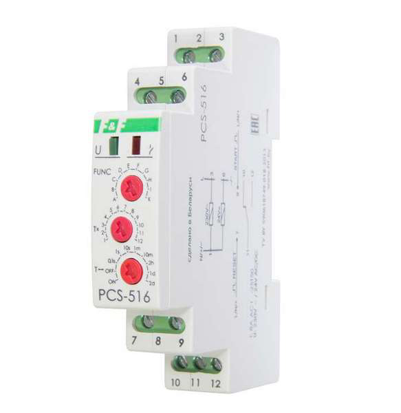 Реле времени PCS-516 - универсальное устройство, предназначенное для управления временными параметрами в электрических схемах. Это многофункциональное реле имеет входы для подачи сигнала START/RESET и работает при напряжении 230В с максимальным током 8А. Оно оснащено одним переключающим контактом, защищенным корпусом IP20 и предназначено для монтажа на DIN-рейке. Реле времени PCS-516 является аналогом популярной модели РВО-1М и производится компанией F&F под кодом EA02.001.013.