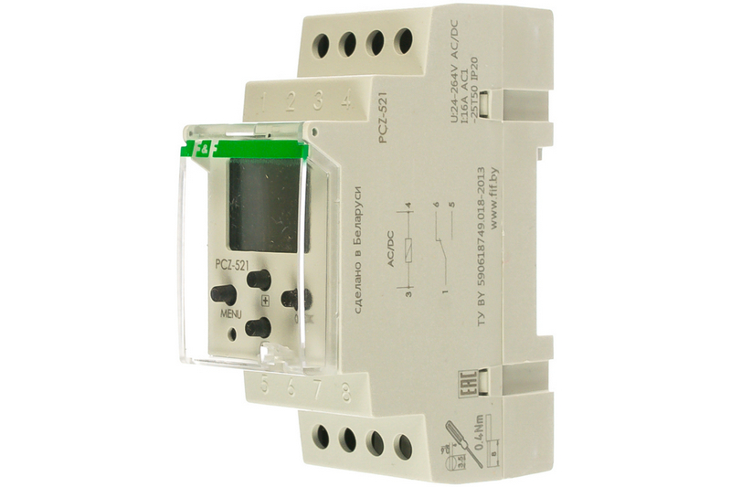 Программируемое реле времени PCZ-521 предназначено для автоматизации работы электрических устройств в зависимости от заданных временных интервалов. Устройство поддерживает широкий диапазон напряжения питания от 24 до 264 В переменного и постоянного тока, что обеспечивает его универсальное применение.Реле времени PCZ-521 оснащено функцией программирования суточных и недельных циклов, позволяя пользователю точно настраивать время включения и выключения подключенных устройств. Устройство имеет 1 выходной контакт с возможностью подключения как Normally Open (NO), так и Normally Closed (NC) нагрузок до 16 А.