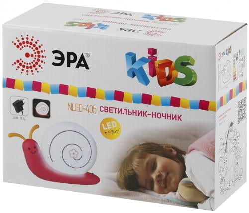 ЭРА наст.светильник NLED-405-0.5W-Y желтый (36/144) Функциональные преимущества Светильник-ночник со светодиодами (LED) в качестве источников света. Встроенный аккумулятор для автономной работы. Сетевой адаптер в комплекте. Светильник работает во время зарядки от сети. Детский дизайн в виде улитки с поворачивающимися «рожками».