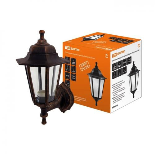 Светильник садово-парковый НБУ 06-60-001 шестигранник, настенный, пластик, медь TDMSQ0330-0721 Настенный светильник (НБУ) может устанавливаться вверх и вниз плафоном в зависимости от того, как расположить держатель светильника и заглушку. Светильники не подвержены коррозии, степень защиты IP44. Возможно использование ламп накаливания (до 60 Вт), компактных люминесцентных и светодиодных ламп с цоколем Е27.