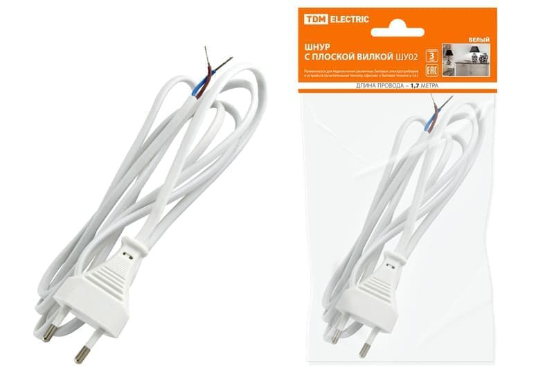 В нашем магазине «Главэлектрика» в Оренбурге, вы можете приобрести товар: «Шнур сетевой без выкл. 1,7 м с плоск. вилкой без з/к ШВВП 2х0,75мм2 ШУ02 белый TDM » с доставкой по г. Оренбург.