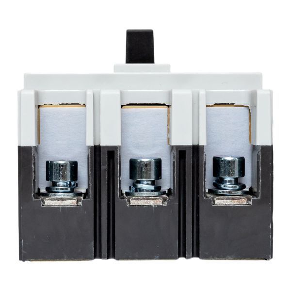 Выключатель ВА-99М выполнен в виде моноблока и состоит из основания и крышки с фальшпанелью, в которой имеется окно для рукоятки управления и толкатель кнопки «Тест» - проверки механизма отключения выключателя. Основание выполнено из термостойкой пластмассы, не поддерживающей горение и являющейся несущей конструкцией для присоединительных зажимов, неподвижных и подвижных контактов с системой дугогашения, механизма управления, блока защиты от сверхтоков. Крышка закрывает все подвижные элементы механизма управления и внутренние токоведущие части.