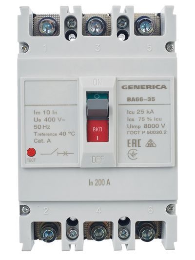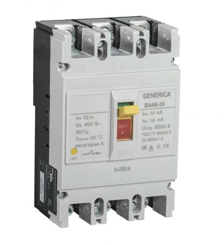 Автоматические выключатели ВА66 GENERICA предназначены для проведения тока в нормальном режиме и отключения тока при коротких замыканиях, перегрузке, а также для оперативных включений и отключений участков электрических цепей. Рассчитаны на эксплуатацию в электроустановках с номинальным рабочим напряжением до 400В и на номинальные токи от 16 до 250А.