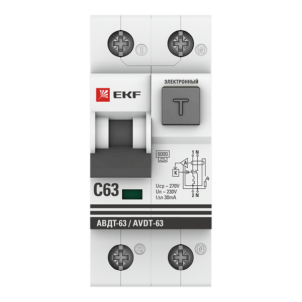 ОБНОВЛЕНИЕ ЛИНЕЙКИ PROXIMA Артикул аналог: D63N26EA63C30 Автоматический выключатель дифференциального тока АВДТ-63 EKF PROxima представляет аппарат, сочетающий функции автоматического выключателя с электромеханическим или электронным УЗО. При обнаружении автоматическим выключателем в защищаемом участке сети тока утечки (повреждения) на землю или сверхтока (тока перегрузки или короткого замыкания) происходит срабатывание устройства, приводящее к отключению защищаемой сети. Возможна коммутация алюминиевым и медным проводником. Автоматический выключатель дифференциального тока малогабаритный АВДТ-63М EKF PROxima представляет аппарат, сочетающий функции автоматического выключателя с электронным УЗО типа АС в компактном корпусе шириной один модуль. При обнаружении автоматическим выключателем на защищаемом участке сети тока утечки (повреждения) на землю или сверхтока (тока перегрузки или короткого замыкания) происходит срабатывание устройства, приводящее к отключению защищаемой сети. Особое отличие дифференциальных автоматических выключателей EKF с электронным УЗО – в наличии блока защиты от перенапряжения. Возможна коммутация алюминиевым и медным проводом.