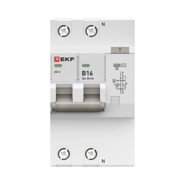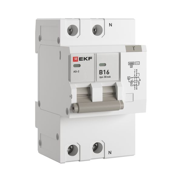 Выключатель автоматический дифференциальный (дифавтомат) АД-2 применяется в электрических цепях переменного тока номинального напряжения 230В и частотой 50 Гц. Предназначен для защиты людей от поражения электрическим током при случайном прикосновении к открытым проводящим частям электроустановки. Защищает электроустановки (ЭО) при повреждении изоляции проводников и неисправностях ЭО, предотвращает возгорания и пожары, возникающие вследствие протекания токов утечки и развивающихся из них коротких замыканий, замыканий на корпус и замыканий на землю. Обеспечивает автоматическое отключение участка электрической сети при перегрузках и токах короткого замыкания.