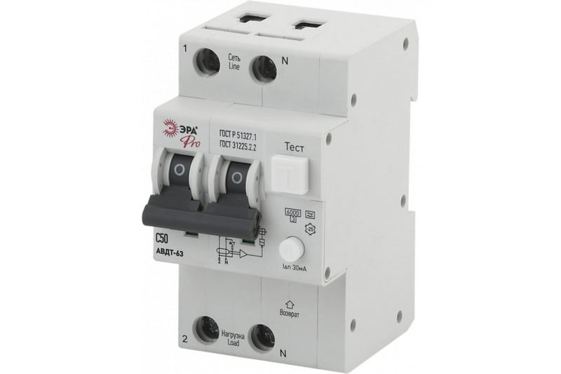 Дифавтомат Эра АВДТ 63 1Р+N С50А 30мА 6кА тип А, Б0031854 - это электрическое устройство, предназначенное для защиты электрических цепей от перегрузок и коротких замыканий.Дифавтомат имеет номинальный ток 50А, что позволяет использовать его в сетях с большой нагрузкой.