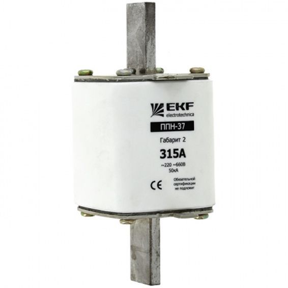 Плавкая вставка ППН-37 400/350А габарит 2 EKF. Предохранители плавкие ППН EKF, укомплектованные плавкими вставками типа gG/gL, предназначаются для защиты кабельных линий и промышленных электроустановок от токов перегрузки и короткого замыкания. Предохранители применяются в электрических сетях переменного тока частотой 50 Гц с напряжением до 660В. Применяются для крепления в распределительных и вводно-распределительных устройствах. Предохранители плавкие ППН могут устанавливаться в основание с держателем, а также в специально предназначенные рубильники. В комплект поставки предохранителей плавких ППН основание с держателем не входит и приобретается отдельно.